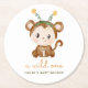 Watercolor Monkey Tropical Leaves Baby Shower Round Paper Coaster