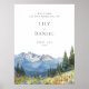 Watercolor Mountain Floral Wedding Welcome Sign