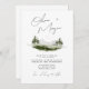 This elegant destination wedding features a romantic watercolor scenery with mountain, pine trees and greenery forest perfect for your mountain top dream wedding and an intricate script calligraphy font of your names giving a more rustic vibe. RSVP, travel and accommodations can be noted at the back together with your wedding website or link that comes with a QR code.