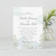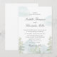 This romantic wedding invitation features a soft watercolor landscape with misty mountains and delicate pine trees, creating a peaceful and timeless atmosphere inspired by nature, fresh air, and meaningful new beginnings. The gentle green and blue tones feel calm, elegant, and deeply symbolic — like two lives starting a journey together surrounded by beauty and serenity.