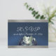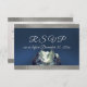 Design features a watercolor mountain scene on the front bottom on a blue satin background and trimmed with silver ribbon on the front. The back has details for the recipient to fill out. Designed to coordinate with the Watercolor Mountain Wedding Invitation Collection. To change details click «Personalize». To move the text or change the text size, font, or color click «Click to customize further»