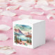 Pretty watercolor mountain view scene wedding personalised favour boxes. Colours are blue, green and brown. Add bride and groom's names and wedding date in the personalise area. Super cute for candy buffets!