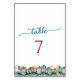 This watercolor mountain wedding table numbers template guides your guests to their tables effortlessly. Easy to edit for each table number at your reception, these stunning watercolor mountain forest table numbers enhance the polished feel of your unique wedding day. Best of all, you can change the colour and font of the cards easily before ordering, or leave the teal and burnt orange fonts as is for a delightful colour mix that's just as on-trend as it is classic. The design repeats on the reverse side.