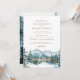 Soft blue and evergreen tones create a calm, romantic backdrop that feels equally suited for winter weddings, mountain lodges, and upscale destination celebrations in British Columbia and beyond. The composition balances airy negative space for clear, readable text with rich scenic detail at the base of the design, making it both visually striking and beautifully practical.