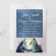 Watercolor Mountains Wedding Invitation features majestic watercolor mountains in shades of blue & green on a white background with a placeholder in blue satin for wedding details. The back of the card features the mountains, in the centre of the back has a blue satin circle, a placeholder for the couples' first name initials which can be removed if you want. Fonts can be changed for your personal preferences.