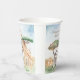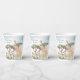 Add an adorable custom safari theme to the party of your little girl or boy with this pretty watercolor African animal paper cup. Cup has mummy and baby giraffes, zebras, and lions in an African savannah background. There is also a place for custom happy birthday or other text (which may be removed per your preference).
