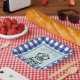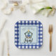 This adorable pattern features a watercolor nativity on a light blue background with white and blue plaid border. Says "Happy Birthday, Jesus!"