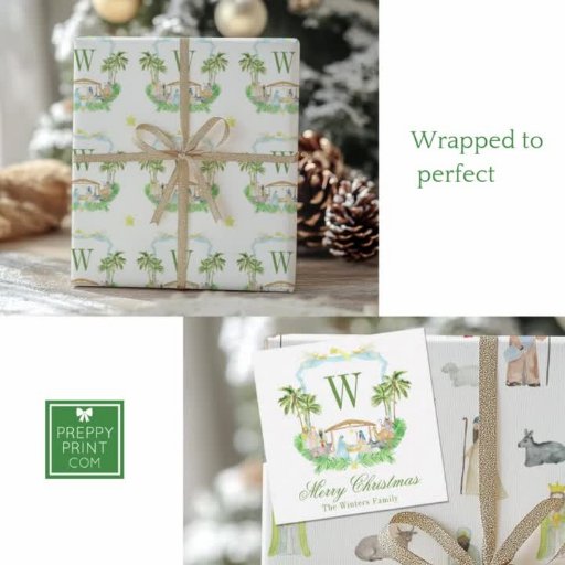 Watercolor Nativity Monogram Crest Christmas