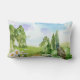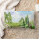 Watercolor Nature Landscape and Daisy Flowers Lumbar Cushion