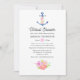 Trendy navy blue and white nautical virtual long distance bridal shower invitation featuring a watercolor floral anchor, flowers and navy stripes on the reverse.