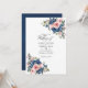 Watercolor Navy and Blush Floral Wedding Photo Invitation