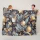 Watercolor Navy Blue Gold Christmas Motifs Holiday Fleece Blanket