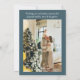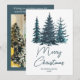 Watercolor Navy Blue Pine Trees Photo Christmas Holiday Card