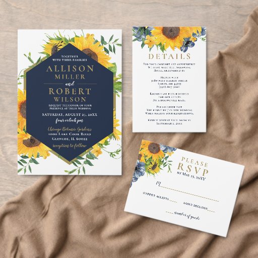 Watercolor Navy Blue Sunflower Rustic Wedding Designed by Maria G