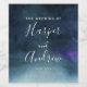 Elegant watercolor navy blue ombre on the background with white texts on overlay. Customise this product by adding your names and wedding date. Great to give out to the guests as wedding favours or serving during reception.