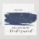 This watercolor navy & gold will you be my bridesmaid card is perfect for an elegant wedding. This abstract starry night design features a dramatic brush of navy blue watercolor overlaid with beautiful faux gold glitter. Customise the card with the name of the bride and the bridesmaid.