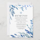 Watercolor Navy Indigo Leaves Bat Mitzvah Invitation