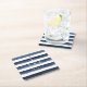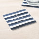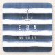 Watercolor navy stripes monogram beach wedding square paper coaster
