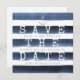 Watercolor stripes in dark navy blue with silver nautical anchor design, simple and chic, Great save the date card for beach wedding, nautical theme wedding, destination wedding, and summer wedding party.