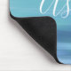 Modern personalised mouse pad. Design featuring of watercolor ocean , shades of blue and name in handwritten lettering in white. Perfect as a gift.