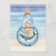 Watercolor Ocean Light bulb Humpback Whale Ship Postcard with Return Address, A fanciful scene painted inside of a light bulb of a boat on the ocean with a heart below that and a whale below that. The background on both sides are the water colour stripes that represent the sand to ocean progression. It's perfect for this whimsical lightbulb watercolor scene. There is a space dedicated for your return address - unusual for a postcard, but nice to have. Create a birthday card or invitation with this card or have a supply on hand for any occasion.