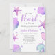 Invite your guests in style with this adorable invitation. This invitation is perfect for a baby shower celebrating a little one on the way! The invitation features soft purple and turquoise colours with pearls, seashell and starfish that add a touch of whimsy. This invitation is sure to appeal to a wide range of people. The invitation can be easily personalised to suit your event's unique details, ensuring a memorable experience for all attendees.