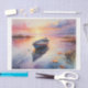 Watercolor of abandoned rawboat in the dawn tissue paper