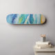 Watercolor of sea waves under the sun skateboard