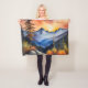 Watercolor of sunrise over snow covered mountains fleece blanket