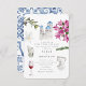 Watercolor Olive Blue tile Greece Wedding Invitation