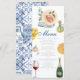 Watercolor Olive Blue tile Mediterranean Wine Menu