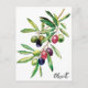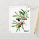 The olive, botanical name Olea europaea, meaning 'European olive', is a species of small tree or shrub in the family Oleaceae, found traditionally in the Mediterranean Basin. This beautiful personalised watercolor olive branch postcard is painted in beautiful hues using both wet-on-wet and wet-on-dry watercolor techniques.