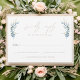A unique hand-painted white and gold wedding response card with a watercolor olive branch