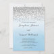 Wedding invitation with faux silver glitter design and watercolor ombre blue background.