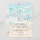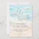 The phrase “on the beach” appears in sweet script at the top, paired with a clean modern font for the names and date. The dark gray lettering keeps things simple, and all colors can be customized to fit your style.