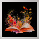 Watercolor Open book with flowers Poster
