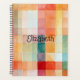 Fun orange and teal watercolor plaid planner featuring a customisable name, perfect to make back to school or starting college memorable.