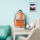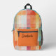 Fun orange and teal watercolor plaid backpack featuring a customisable name, perfect to make back to school or starting college memorable.