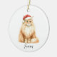 Watercolor Orange Cat in Santa Hat Ornament