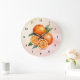 Watercolor Orange fruit Clock with Black numbers