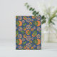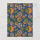 Watercolor Orange Indigo Fruit Pattern Postcard