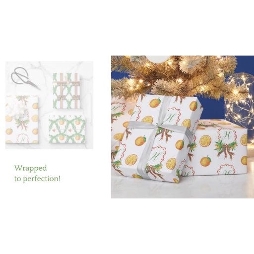 Watercolor Oranges Plaid Bow Christmas Monogram Paper Plate
