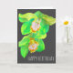 Modern floral watercolor flower art by Sacha Grossel of an orchid flower with lemon and lime citrus colour design scheme. Modern and colourful art with birthday greeting
