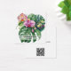 A business card with a white background featuring orchid flowers and monstera leaves.
