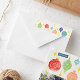 Pretty, decorated, watercolor Christmas tree ornaments decorate your envelopes for a unique and charming holiday card accessory perfect for sending to friends and family. Don't forget to personalise with your return address.