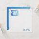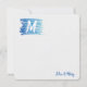 Blue and aqua watercolor paint smear with a monogram on soft white texture for notecard.
