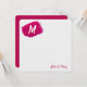 Pink-red paint smear with a monogram on soft white texture for notecard.