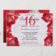 Elegant red watercolor painted abstract roses on black and white concrete patterned Sweet 16 Celebration party invitations. Very classic and sophisticated design for the classy birthday lady. Personalise with your own message and monogram on the back. All photo print design.