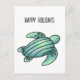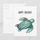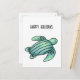 watercolor painted sea turtle cartoon blue green holiday postcard