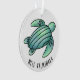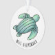 watercolor painted sea turtle cartoon blue green ornament